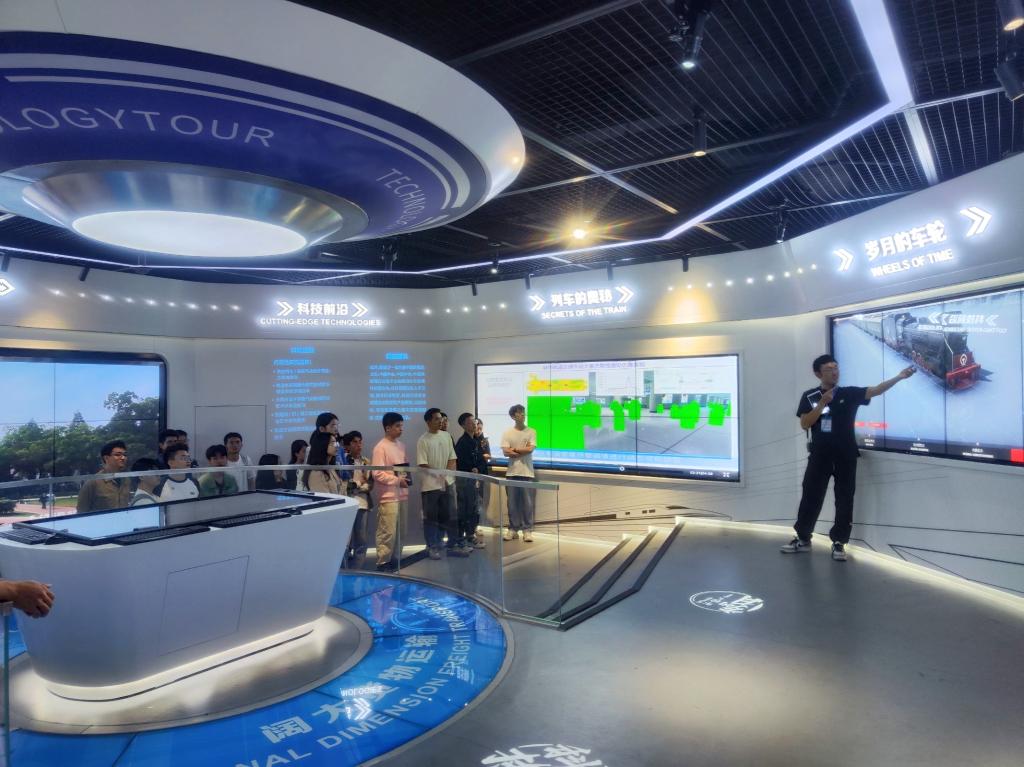 在科普基地科普馆中,第二党支部的同学们看到了交通院的发展史以及科研团队。此外,科普馆志愿者还展示了列车的系统知识、运筹理论、列车发展历史以及轨道交通未来展望。