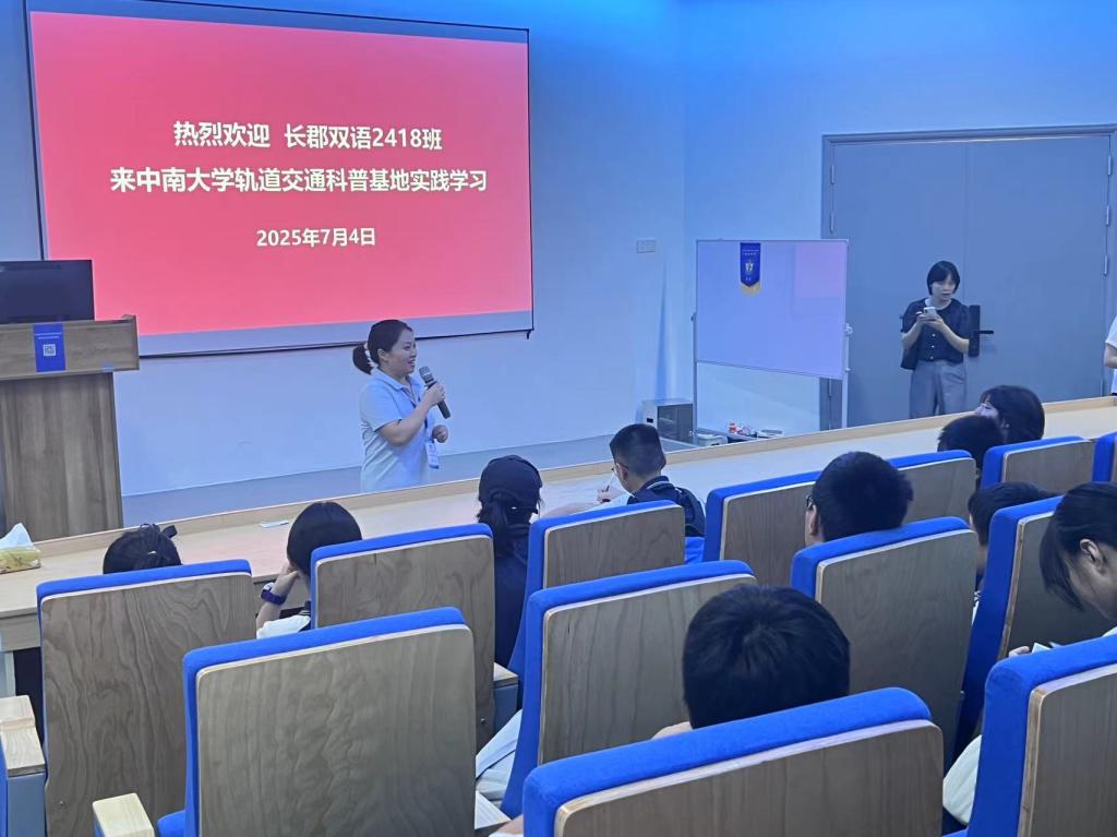 据黄启萍报:2025年7月4日上午,长郡双语和师大附中100余师生来访科普社会实践,通过参观铁路园、列车气动研究实验室、实车碰撞实验室,聆听讲座、学长学姐对话等方式,零距离感受中国铁路的辉煌发展历程与高速铁路科技创新的澎湃动力。