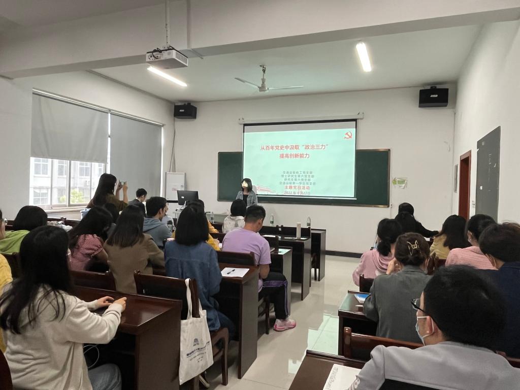4月22日下午14:00,交通运输教工党支部、博士研究生第六党支部、研究生第六党支部和交通运输第一学生党支部在交通楼509开展“从百年党史中汲取‘政治三力’提高创新能力”联合党日活动。研究生第六党支部书记李冰洁...