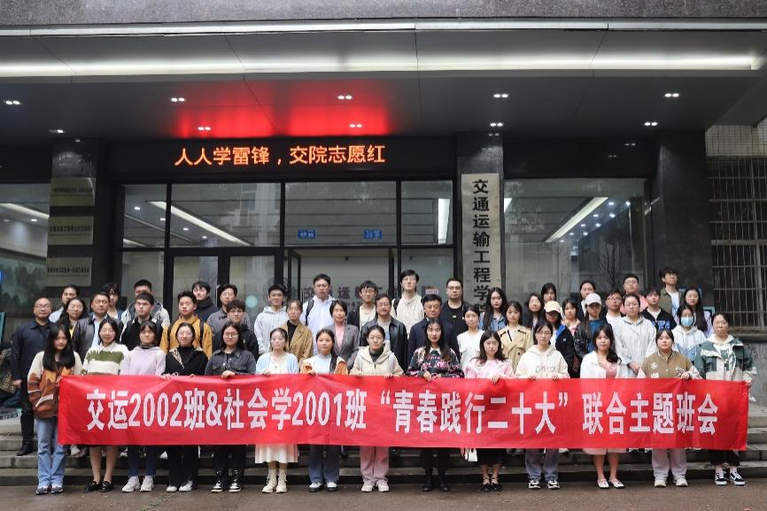 3月8日下午,交运2002班与社会2001班联合班级于铁道校区交通楼513室举行“青春践行二十大”主题班会。同人动漫 党委副书记黄健陵、交通院党委书记贺志军、交通院党委副书记宋晓东、公管院党委副书记耿贵斌、交运2002班...