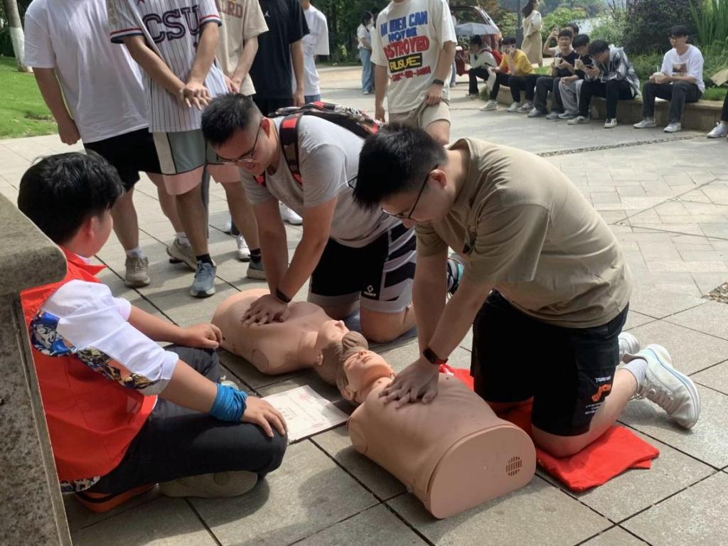 上午九点,支部同志前往梅溪湖开展志愿服务活动。活动伊始,志愿者为同志们演示心肺复苏术和海姆利克急救法,讲解体外除颤仪的使用方法和相关急救知识。同志们依次利用假人教具进行胸外按压实操。随后,同志们分成两组,捡拾垃圾,清理河滩,维护公园环境。