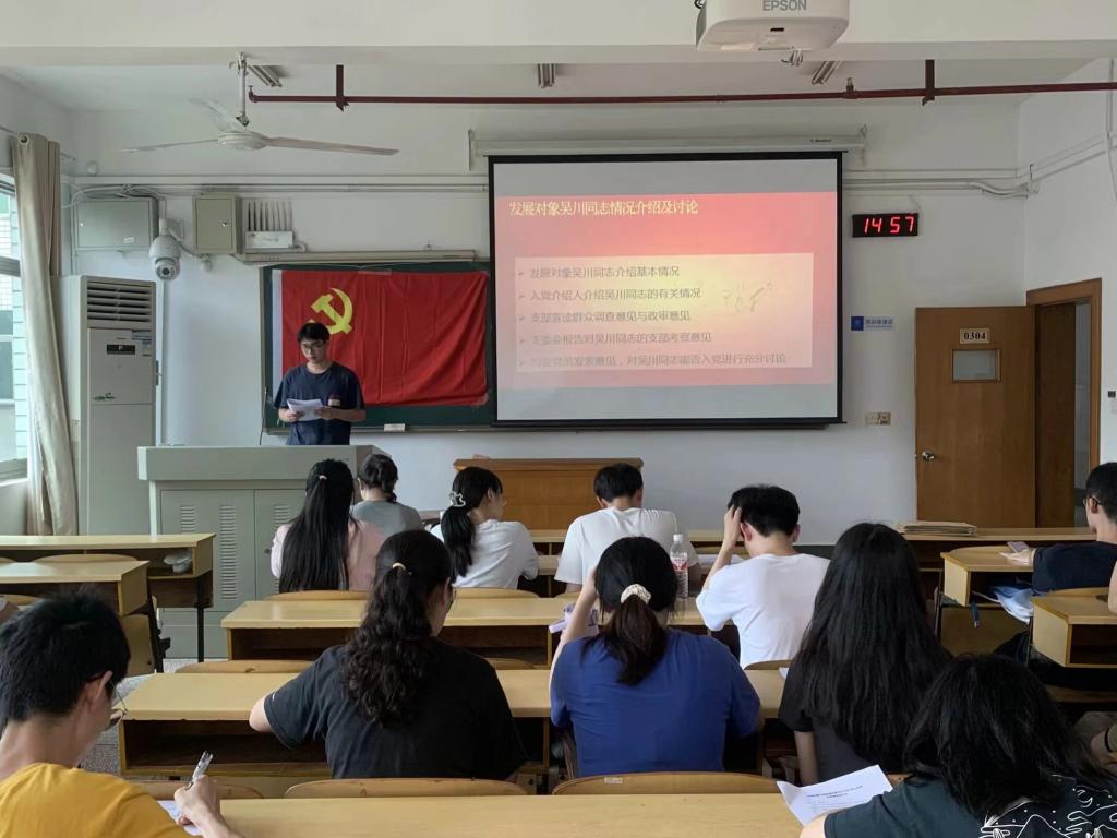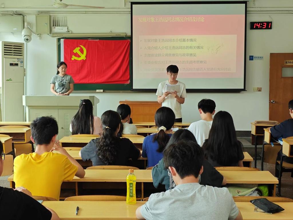 会议伊始,王羽珊同志介绍了本次会议流程和要求。首先进行预备党员接收。吴川等六位同志依次宣读《入党志愿书》,介绍个人基本情况、入党动机等内容。入党介绍人介绍其有关情况,支部宣读群众调查意见与政审意见,支委会报告支部考察意见,与会党员发表意见,对其能否入党进行讨论。随后进行无记名投票,计票人宣读票决结果并宣读支部大会决议。