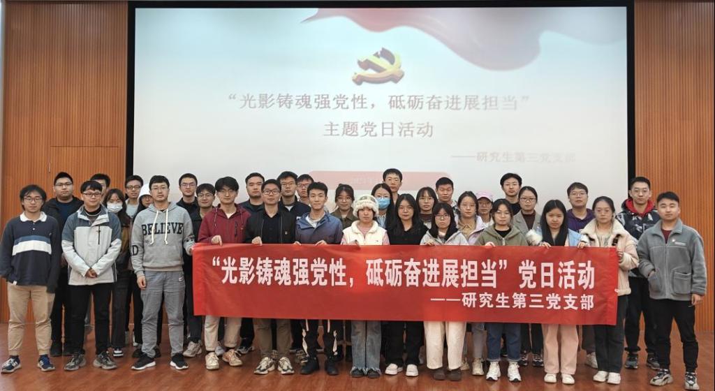 11月16日19:00,研究生第三党支部在双创基地409开展了“光影铸魂强党性,砥砺奋进展担当”主题党日活动。本次活动中,全体党员及积极分子积极参与,共同追忆历史,汲取前行的力量。