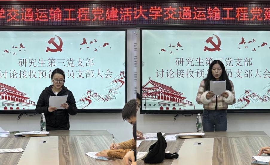 研究生第三党支部讨论接收接收预备党员支部大会顺利召开