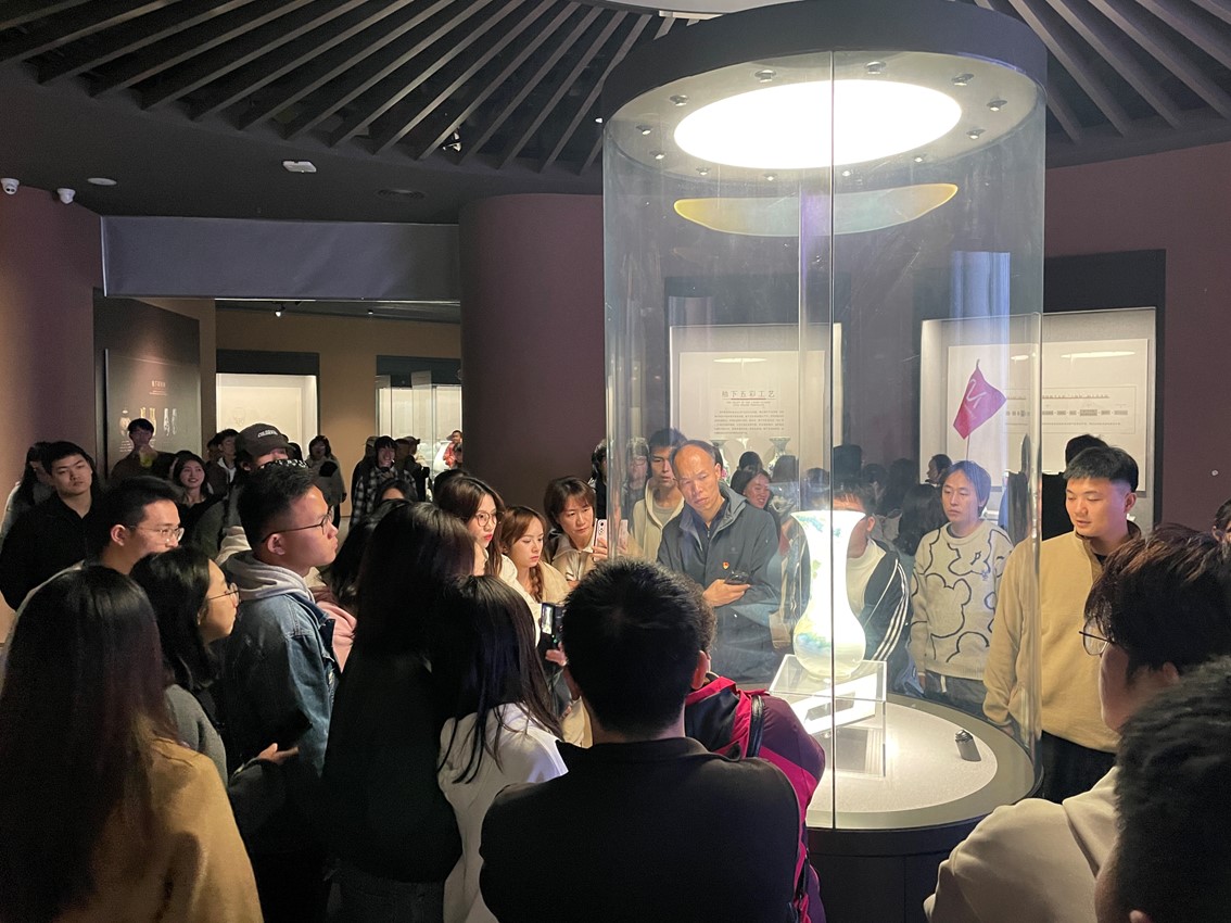 下午,在品尝过醴陵特色美食后,同志们前往醴陵陶瓷博物馆进行参观,博物馆充分展示了醴陵陶瓷文化的发展脉络、醴陵釉下五彩艺术的巨大成就以及现代工业陶瓷的勃勃生机。博物馆镇馆之宝“釉下五彩扁豆双禽纹凤尾尊”吸引同志们驻足观看,纷纷感叹陶瓷艺术之美。
