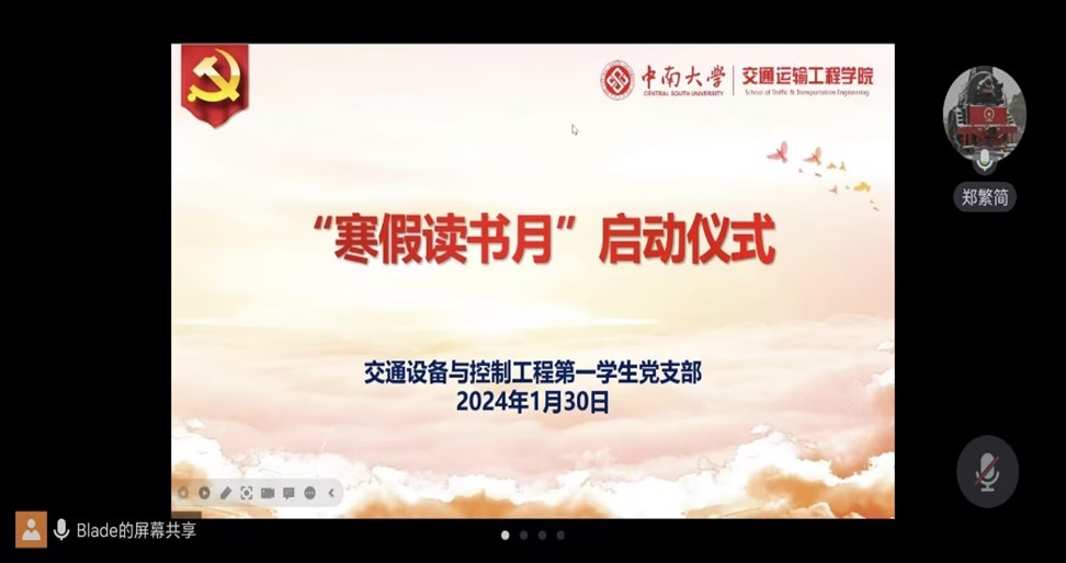 1月30日晚,交通设备与控制工程第一学生党支部于线上举行“寒假读书月”启动仪式。本次仪式由关剑祺同志主持,支部全体党员同志参加会议。