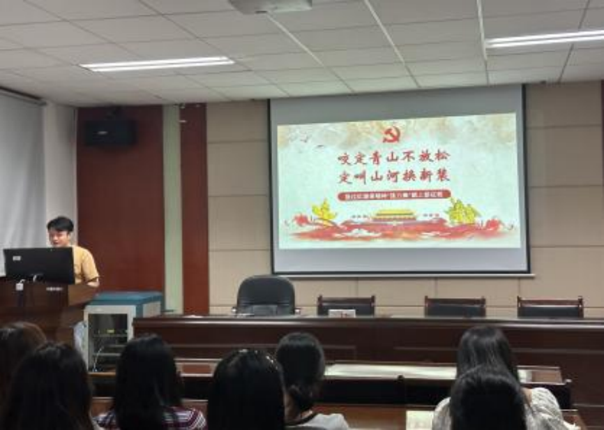 会上,陈依婷同志首先带领大家学习《中国共产党党徽党旗条例》,强化支部党员规范使用党徽党旗的意识。随后,她对本次主题教育作总结发言,回顾主题教育工作开展的背景及时间线,总结支部过去几个月主题教育开展情况,针对主题教育过程中支部存在的不足之处提出了改进意见。她提出,支部全体党员同志应当继续学习贯彻习近平新时代中国特色社会主义思想,进一步统一思想、统一意志、统一行动,坚定拥护“两个确立”,坚决做到“两个维护”,从习近平新时代中国特色社会主义思想中汲取不懈奋斗的动力。