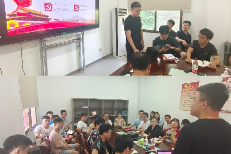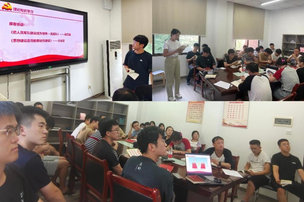 会上,支部党员通过集中学习的方式,认真学习贯彻习近平新时代中国特色社会主义思想及近期重要讲话精神,学习党章、新形势下党内政治生活若干准则等党内法规,进一步统一思想、深化认识。胡正晟和王祉歆同志带领大家进行原著领读及感悟分享,领读内容的主题分别为《把人民军队建设成为世界一流军队》和《思想建设是党的基础性建设》,增强了各位党员对经济建设与国防建设规律的认识与提高自身思想政治觉悟的重要性的意识。接着,支部书记王鑫同志带领支部党员学习《中国共产党党徽党旗条例》解读,让与会党员深刻意识到在党爱党,从维护党徽党旗尊严做起,要在细微处体现对党的信赖与爱护。