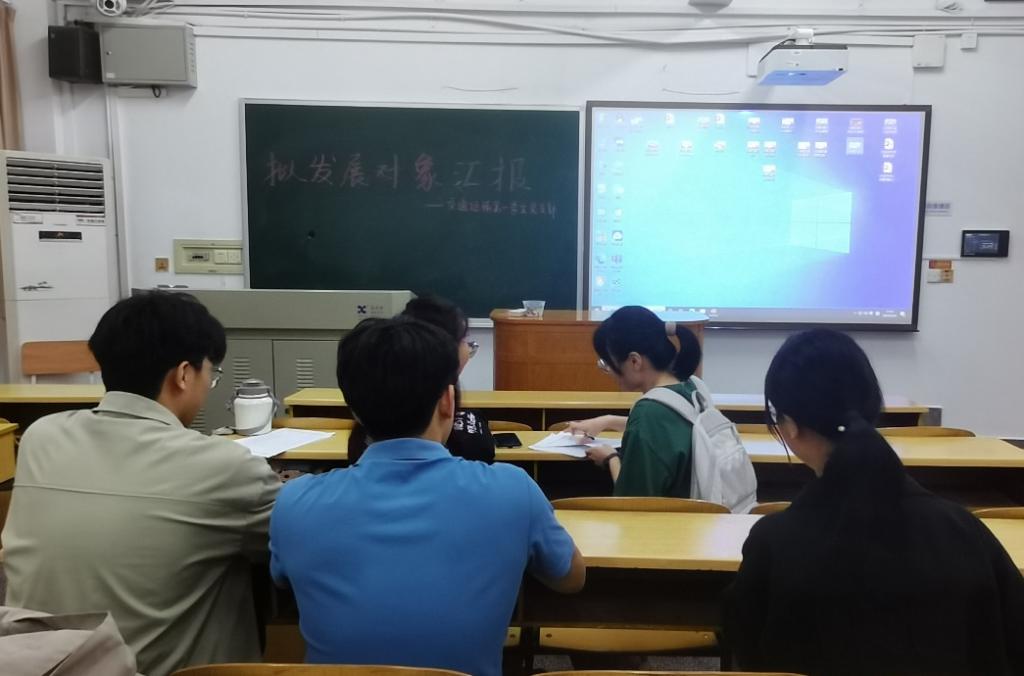 9月26日下午14:00,交通运输第一学生党支部在世纪楼A303室举行拟发展对象汇报会议。会议由支部书记石晓琪同志主持,支部党员同志及本次拟发展对象候选人参加会议。