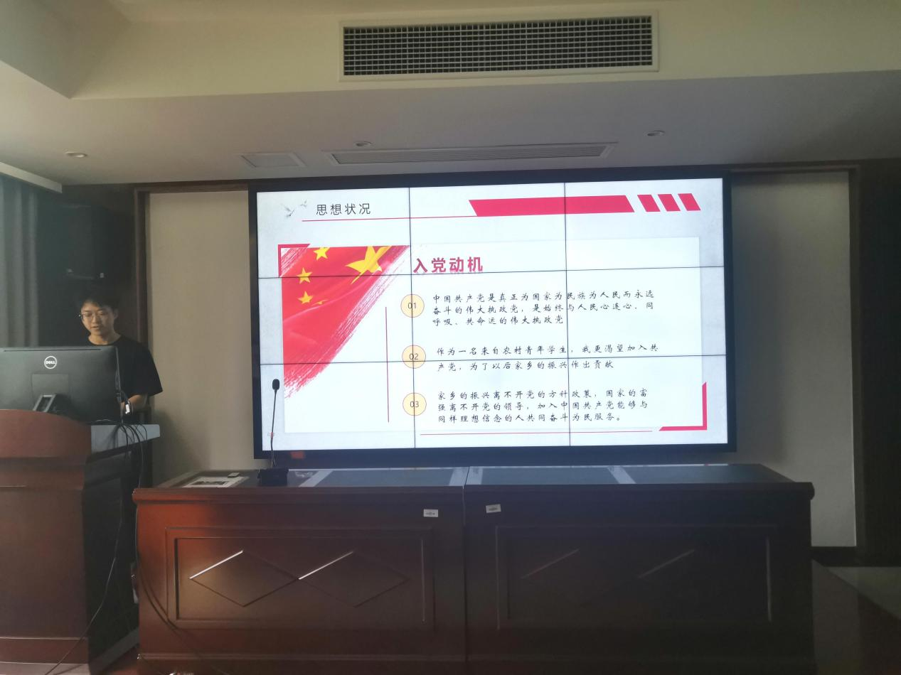 会议伊始,黎瑞同志介绍了汇报的流程及相关事宜。随后,各发展对象候选人依次上台汇报,就自己进入大学以来的学习情况、学生工作、志愿服务等方面进行了总结,梳理了在入党道路上的思想转变历程,展开叙述了对党的认识和入党动机,同时反思了自身目前存在的不足并提出改进措施,表明了向党组织靠拢的决心。