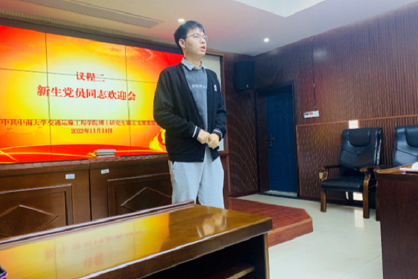 11月14日下午16:00,交通院博士研究生第五党支部全体成员在交通楼425举行支部全体党员大会暨主题党课,支部书记胡心磊主持会议。