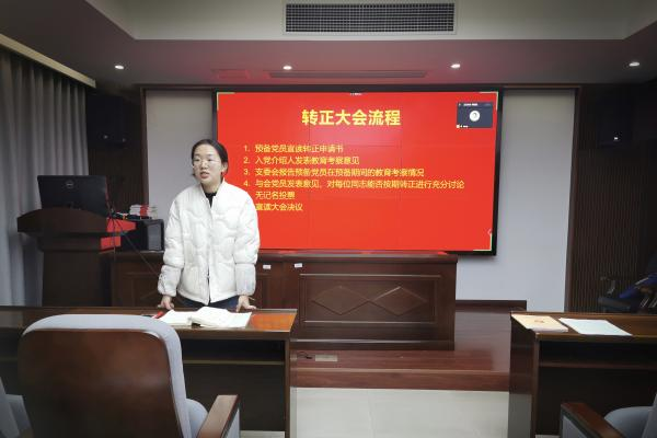 铁道学院交通楼425举行了预备党员转正大会。会议由支部副书记周婧盈同志主持,支部全体成员参加本次会议。