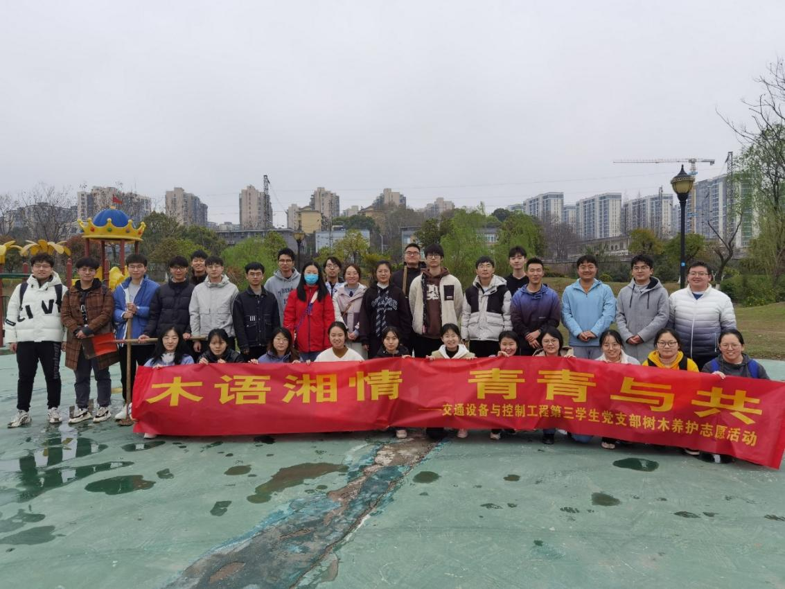 为弘扬绿色环保理念,发扬志愿服务精神,3月18日上午,交通设备与控制工程第三学生党支部于天心区滨江公园顺利举行了“木语湘情,青青与共” 树木养护志愿活动,针对滨江公园林木树丛开展树木养护、杂草清理等工作。本活动组织党员、入党积极分子共31人参加。