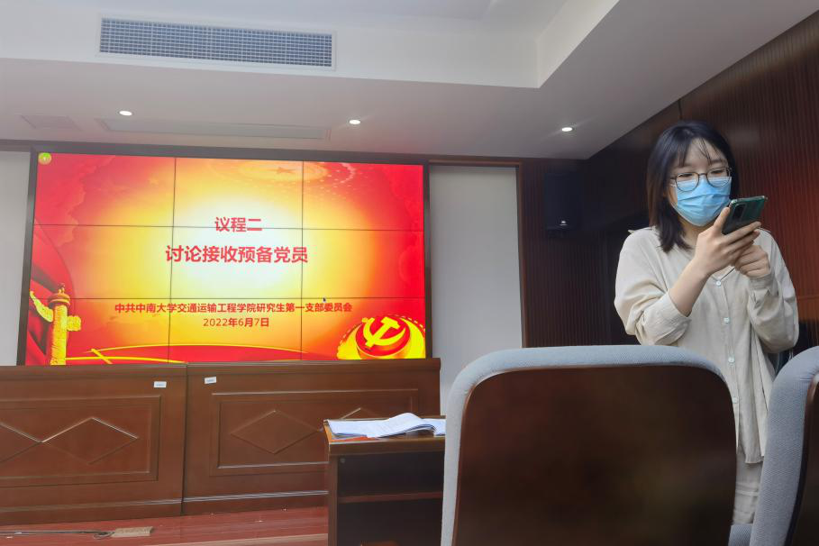 研究生第一党支部接收预备党员大会在交通楼425顺利举行。会议由支部组织委员战映辰同志主持。