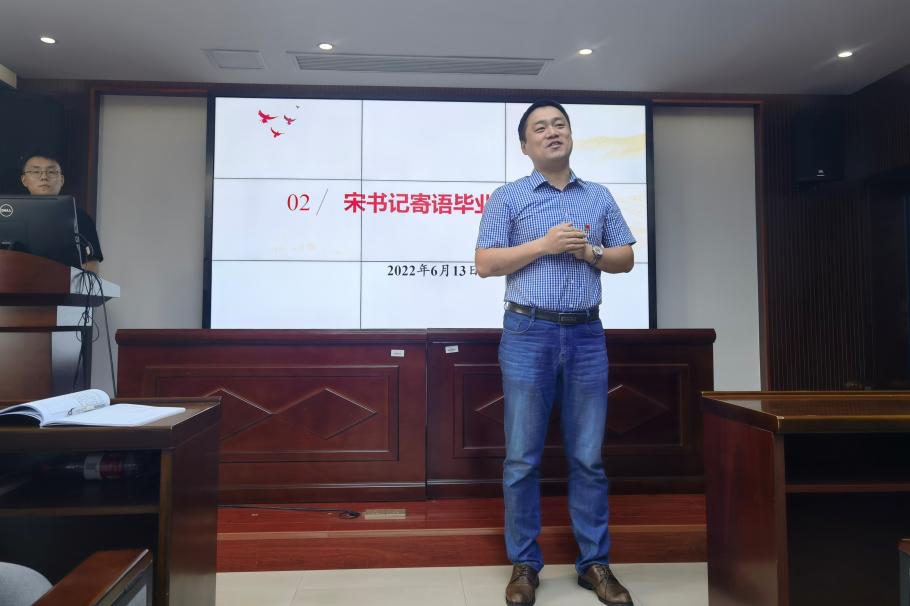 观影结束后,宋晓东副书记为毕业生党员送上寄语。宋书记首先对支部严格的考勤制度以及本次集体学习的内容表达了肯定,同时希望支部在未来的建设中能够不断探索创新,打造支部品牌。接着他对毕业生党员们三年来为学院科研及党建工作所做的贡献表达了感谢,他表示学院与支部建设的成功都与各位研究生党员同志们的努力奋斗密不可分。最后宋书记为各位毕业生党员送上期许,希望他们能够不断追求进步,在今后的岗位上,踏踏实实,发挥自己所学,奉献社会与人民。