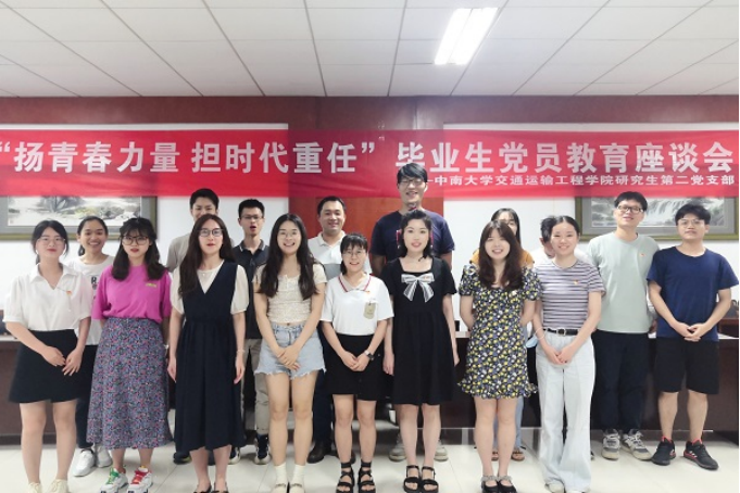 61419:00交通院研究生第二党支部于交通楼513教室顺利举行毕业生党员教育座谈会暨毕业生党员欢送会。会议由支部书记黄湘智同志主持,学院党委副书记宋晓东老师及支部全体党员同志参会。