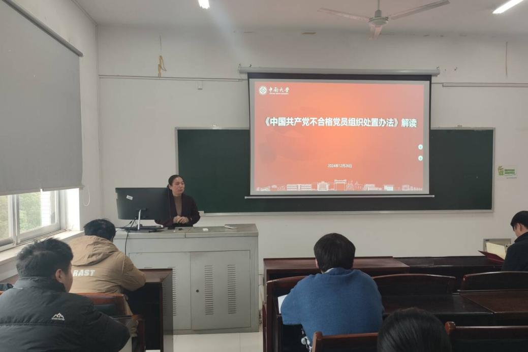 韩锟副院长首先为同志们介绍了新时代合格党员的标准,即讲政治有信念,讲规矩有纪律,讲道德有品行,讲奉献有作为,做到政治合格、执行纪律合格、品德合格、发挥作用合格。紧接着,韩锟副院长对《办法》进行了详细解读,主要包括《办法》的主要内容,《办法》对组织处置的概念、方式的规定,组织处置的适用情形,组织处置工作应当遵守的原则,组织处置的程序,对受到组织处置的党员的教育管理,申诉及其处理,《办法》对组织处置工作责任的规定,抓好《办法》贯彻执行的有关要求九个方面。这些规定不仅是对不合格党员进行组织处置的法律依据,更是确保党内健康生态、提升党员整体素质的重要保障。