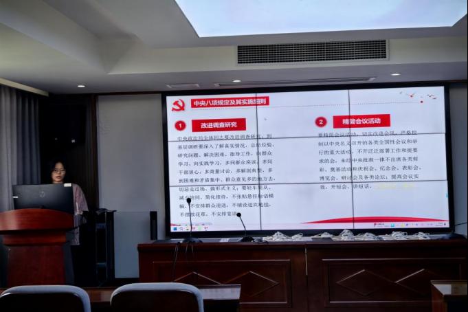 会议第一项聚焦中央八项规定精神专题学习。由李涵同志进行领学,与会全体党员集体研读《党的十八大以来深入贯彻中央八项规定精神的成效和经验》《八项规定改变中国》等核心章节,并结合习近平总书记关于加强党的作风建设的重要论述开展研讨。李涵强调:“八项规定是共产党人‘徙木立信’的庄严承诺,青年党员当以‘慎微’之心守牢底线,让清正学风与扎实作风互促共进。”