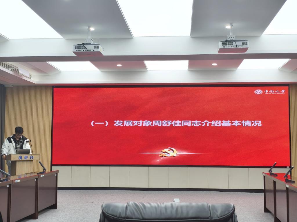 11月28日19:00,研究生第四党支部在3D会议室召开接收预备党员、预备党员转正大会暨学习贯彻党的二十届四中全会精神主题党日活动,讨论接收周舒佳、祁小伟为预备党员及曾超群同志的转正事宜,会议由党支部书记梁云斌同志主持。