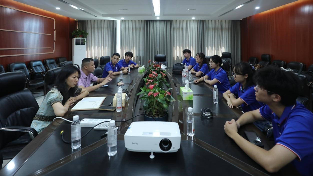 (曹宇正在向学生团队介绍红星集团基本情况)