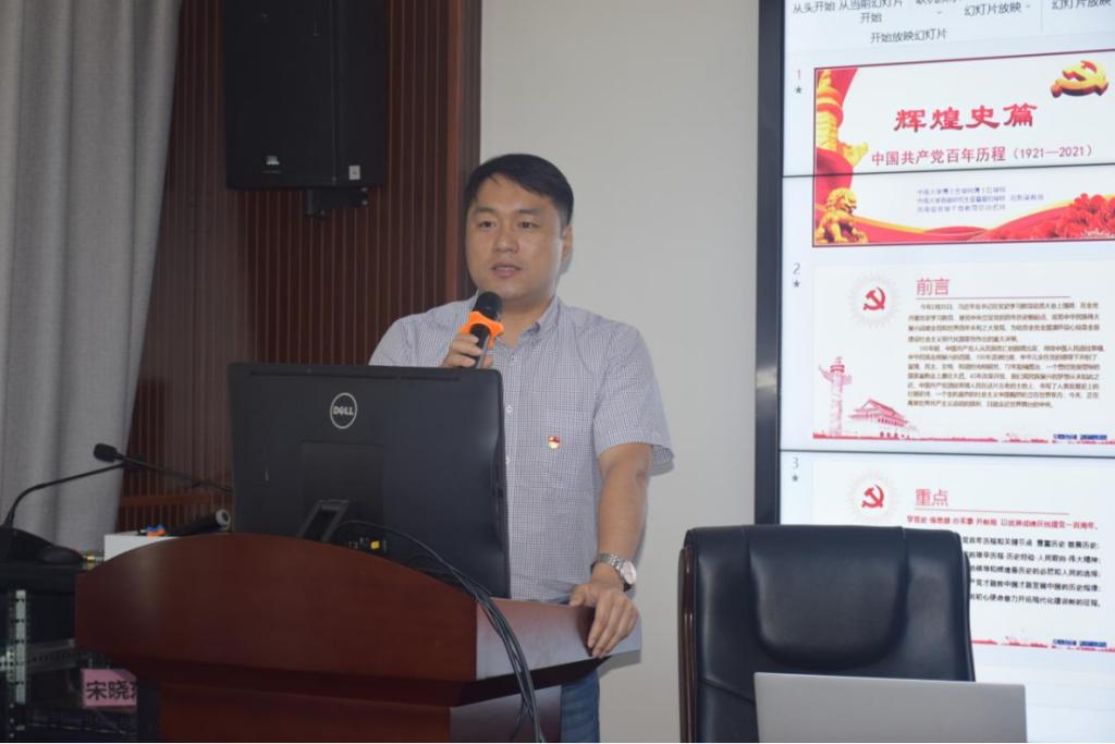 课程第一部分,刘新庚教授以“辉煌史篇•中国共产党百年历程”为主题展开课程讲授。刘教授从党史发展脉络及学习意义、党领导的新民主主义革命是为民族独立人民解放而奋斗的历史、党领导的社会主义革命和建设是探索建设新社会新国家的历史、党领导的改革开放和现代化建设新时期是走向富起来的历史和党领导的新时代新征程是推进中华民族伟大复兴强起来的历史五个方面为与会同志们系统地介绍了中国共产党百年来所走过的辉煌历程。刘教授通过生动有趣的语言和激动人心的视频带领同志们在百年党史的长河中遨游,也为同志们带来了深入人心的历史启示。
