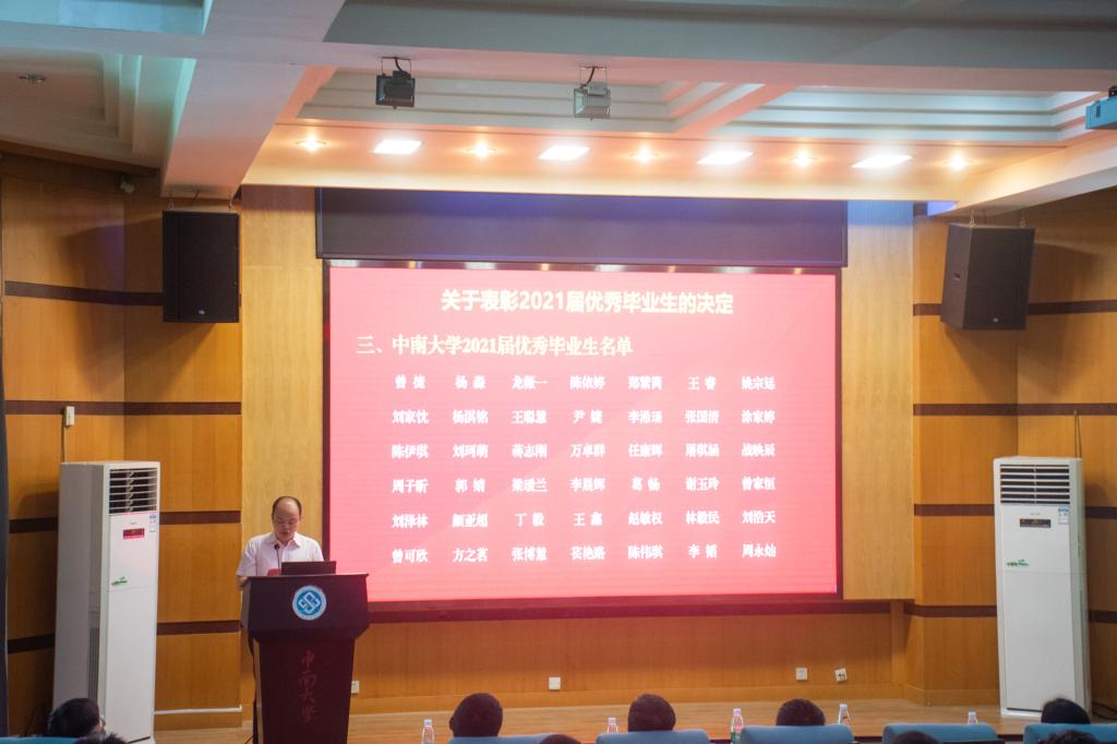随后,副院长刘辉教授宣读《关于表彰2021届优秀毕业生的决定》以及表彰名单:副院长韩锟宣读《关于聘任郑繁简等同学为同人动漫