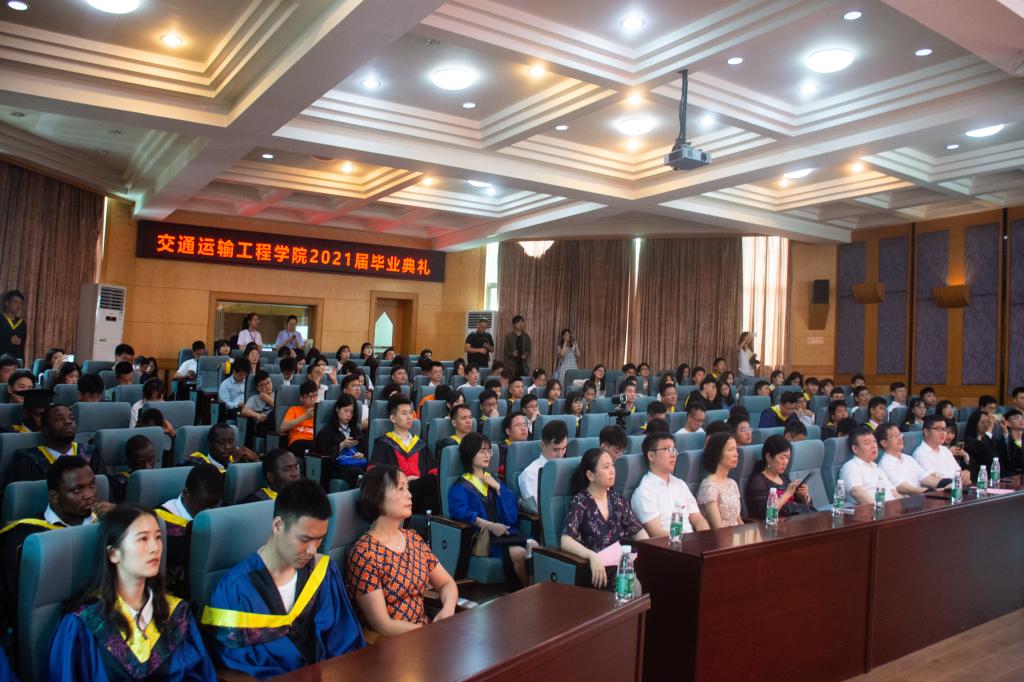 2021届毕业典礼暨学位授予仪式在铁道校区隆重举行。根据疫情防控的需要,本次毕业典礼采取主会场+分会场、线上+线下的形式进行,国际报告厅设一个主会场,世纪楼设五个分会场。全体院领导、各系(中心)领导、教师、班导师代表、全体辅导员、全体2021届毕业生出席典礼。本次典礼由党委副书记宋晓东主持。