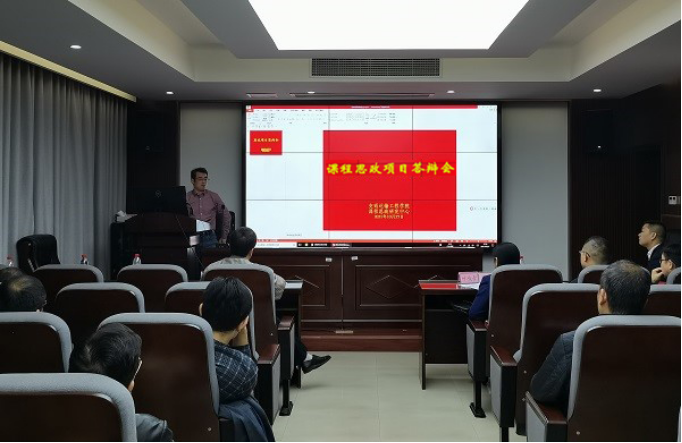 课程思政中心于交通楼425教室举行了思政项目答辩会,会议在激扬热烈的气氛中一直持续到下午18:30。学校教学督导、马克思主义学院谭希培教授、学院党委书记贺志军、学院副院长彭勇、副院长张英贵、党委委员叶峻青、综合办主任邹杨华出席本次会议并担任评委。会议由学院副院长陈维亚(图1)主持。