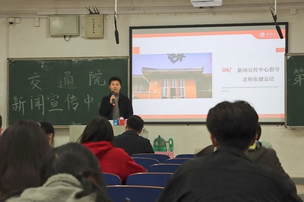 11月20日下午3点,交通院新闻宣传中心第七届学生干部交流会暨宣传能力培训会在新校A座108教室举行。交通院党委副书记宋晓东、新闻宣传中心指导老师张健出席本次交流大会,第七届新闻宣传中心全体学生干部参加本次交流大会和培训会。本次会议由柳奕多、陈怡榕两位同学主持。