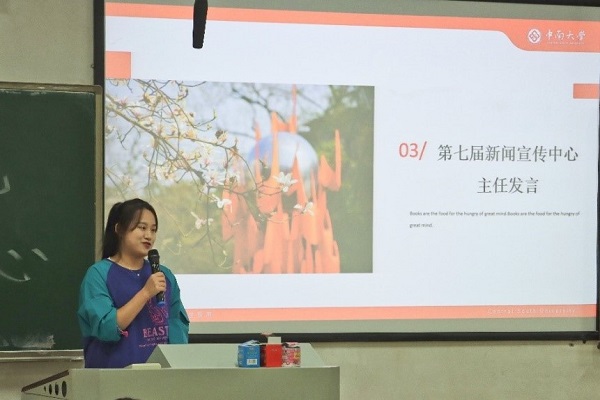 随后,新闻宣传中心指导老师张健老师宣读了第七届同人动漫学生干部聘任名单。名单宣读结束后,第七届新闻宣传中心主任王尚君对新闻宣传中心未来发展规划进行了阐述。她以如何赓续命脉,如何守正创新为思考方向,以重视情怀教育,做有格局、有高度的宣传阵地与重视内容逻辑,做有思想、有底蕴的新闻窗口为破题思路,提出为文字注入生命力与精神内力,创造有质感有见地的宣传品牌。她期待着新一届学生干部在部门中收获责任感与归宿感,与新闻宣传中心同进步共成长。