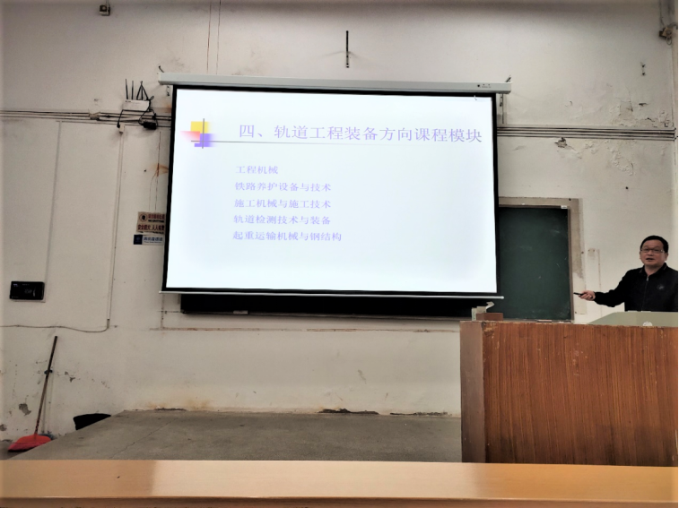 随后,应立军老师则详细介绍了轨道工程装备方向的课程模块、就业方向、教师科研项目。他提到,轨道工程装备方向主要培养学生系统深入掌握轨道交通装备技术实现轨道养护、检测智能化轨道工程装备专业拥有高速铁路先进装备实验室铁路工程装备研究所,开展国家和省部级科研项目取得了多项国家级奖项。