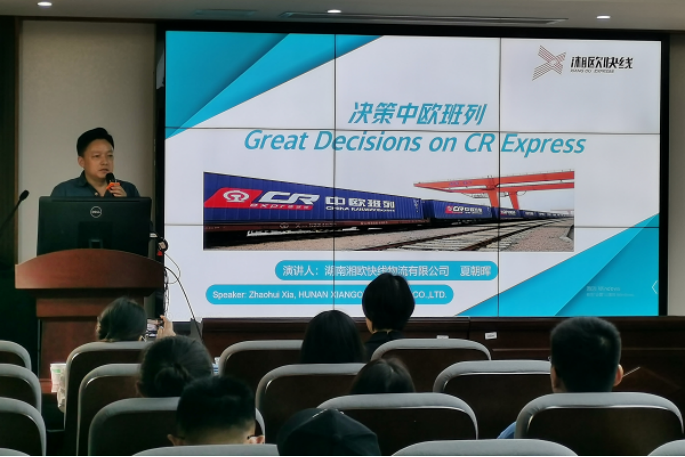邀请长沙湘欧快线物流有限公司总经理夏朝晖先生于铁道校区交通楼425报告厅为交通院师生开展了“决策中欧班列”主题讲座。此次报告会由学院交通运输系冯芬玲老师主持,物流工程系主任张得志老师及部分研究生、本科生参加了此次专题讲座报告会。