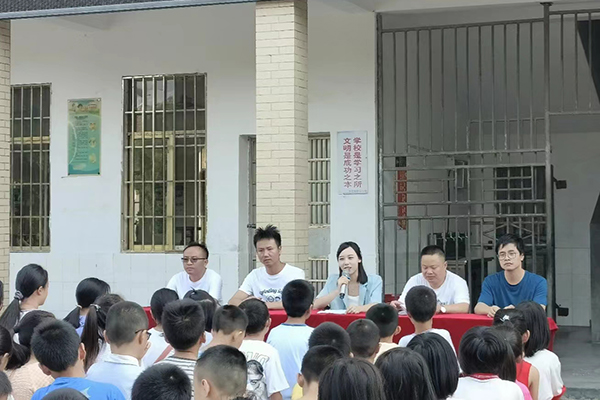 支教团为香花镇中心小学注入了新的活力、爱与希望。最后谢凌飞校长强调学生在校及离校的安全问题,并组织老师们为学生佩戴防溺水手环。