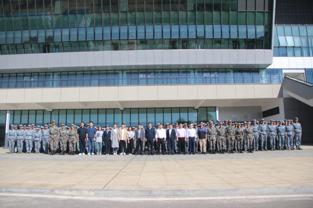 10月20日早上10:00,军训场上,口号整齐划一,步伐铿锵有力。学院院长高广军、学院党委副书记宋晓东、学院副院长彭勇、张英贵、陈维亚、刘辉和学生工作办公室全体老师来到新校区体育馆前军训场亲切看望军训教官和2022级军训新生。
