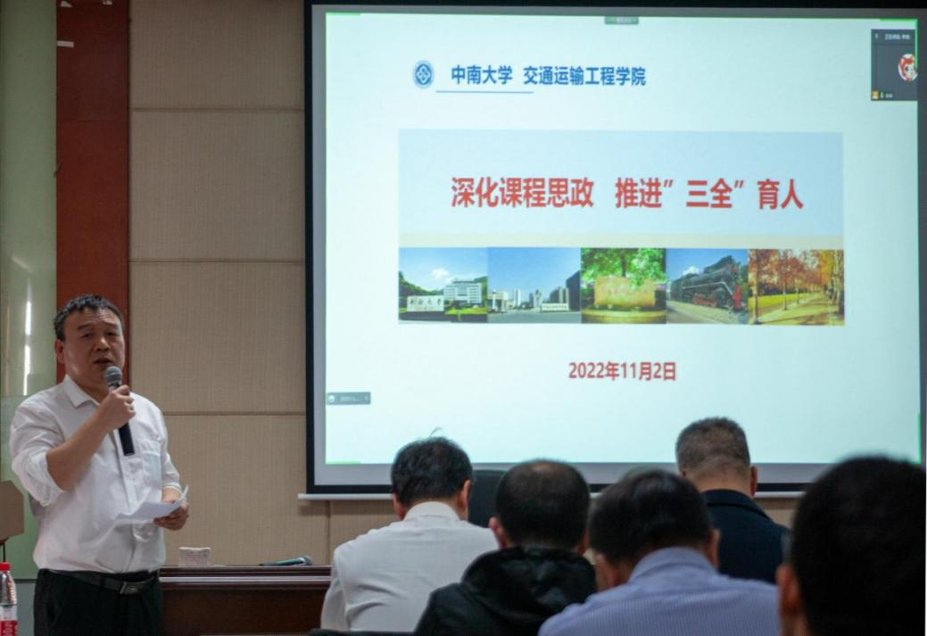 随后,交通院五位老师结合自身在课程思政中的思考与实践进行分享。湖南省课程思政课堂教学竞赛一等奖获得者李烨老师,从课程思政教学中的常见误区及其内涵谈起,对以课程特色和学科优势深入研究目标的教学方法进行了剖析。他指出,要将思政元素有效融入到专业知识传授过程中,达到育人的最好效果。2021年校级思政示范课程代表章易程老师以工程流体力学为背景,将建设内容分层次依轻重进行阐述,提出产出导向的沉浸式因才教学模式和多尺度因才考核模式。交通院党委副书记宋晓东根据学生工作的特点和学院思政教育的案例,谈及对课程思政建设的看法,号召全体教师发挥特色、明确职责、夯实基础、协同发力,不断利用思政资源,为培养敢想敢为又善作善成的时代好青年共同奋斗。党委委员叶峻青老师部署了课程思政案例的编写工作,并结合自身参赛的经历,着重阐述了课程思政教学案例的编写方法。李蔚老师提出课程思政要进行教学创新,深化人才培养,丰富思政案例,精益求精完成思政案例编写工作。