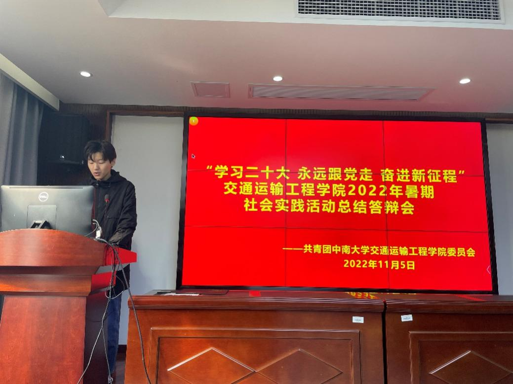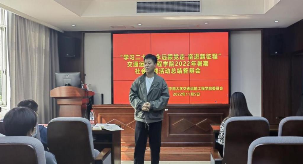 “学习二十大,永远跟党走,奋进新征程”2022年暑期社会实践活动总结答辩会于铁道校区交通楼425成功举行。学院团委书记张健老师、团委副书记郑繁简老师、团委副书记易思睿担任答辩评委,6支暑期社会实践团参与本次答辩。本次总结答辩会由庄明宇同学主持。