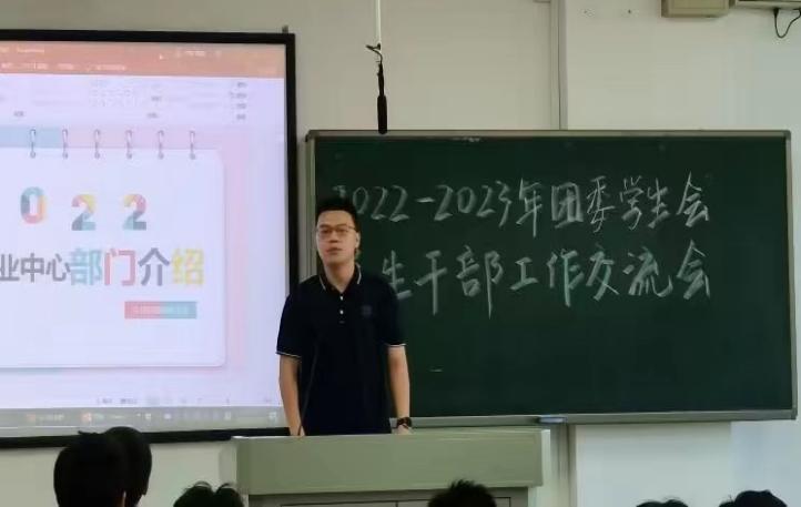 于2022年11月9日下午三点整在新校区A座314召开2022-2023年团委学生会学生干部工作交流会。院团委书记张健老师,团委副书记郑繁简老师,以及院团委、学生会各部门成员参加本次会议,本次会议由张舒瑶同学主持。