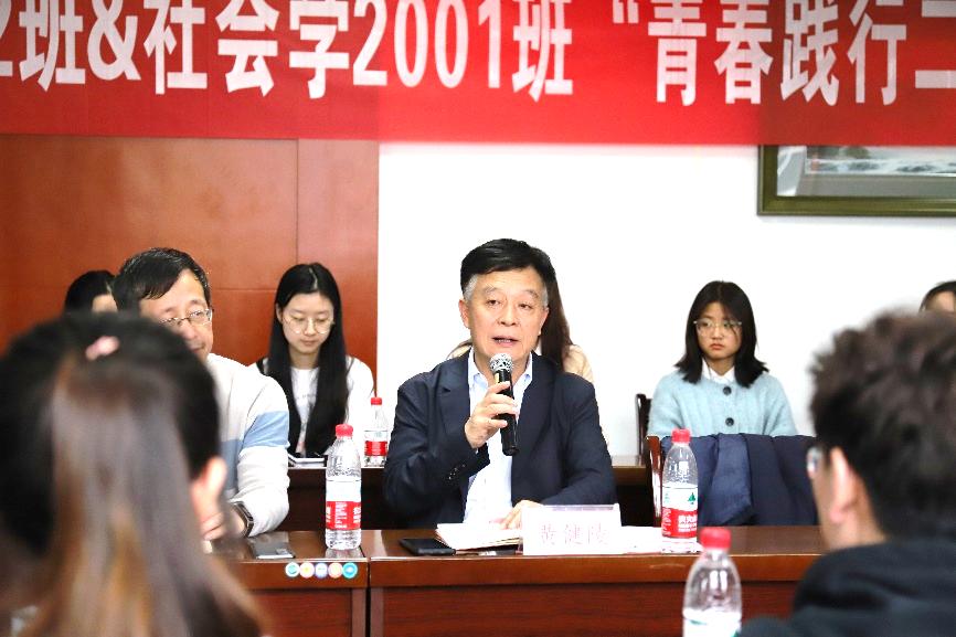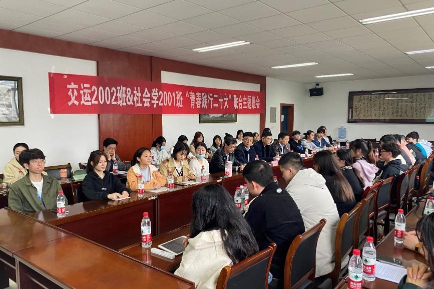 党委副书记黄健陵、交通院党委书记贺志军、交通院党委副书记宋晓东、公管院党委副书记耿贵斌、交运2002班班导师冯芬玲老师、社会2001班班导师刘惠颖老师、交通院2020级辅导员石晓琪老师、公管院2020级辅导员孙立明老师出席本次班会,联合班级全体同学参加本次班会。本次班会由交运2002班团支书秦浩天主持。
