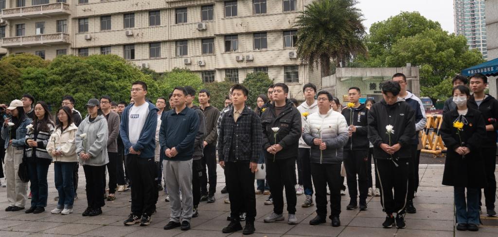 之后,全体参与人员在老师带领下依次向雕像献花,师长与学生代表手持花束,献上对铁路领域先辈的崇高敬意,并表达无限追思。