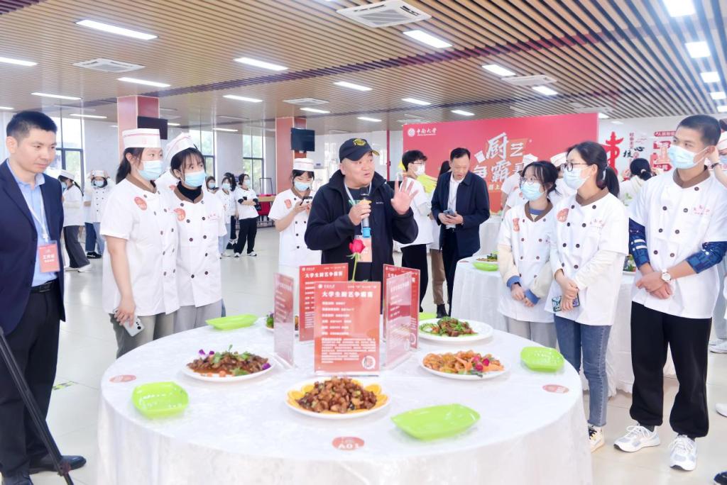 党委副书记宋晓东、后勤保障部关工委常务副主任陈哲启、学工部学生事务办公室主任刘勇、后勤保障部饮食服务中心主任周鹏到场指导,由李江涛、黄金亮、方胜、吴华平、邓革平等五位厨师担任专业评委。现场还有各学院共计30名大众评审与30支学生参赛队伍,本次活动由李惠妹、张春浩同学主持。