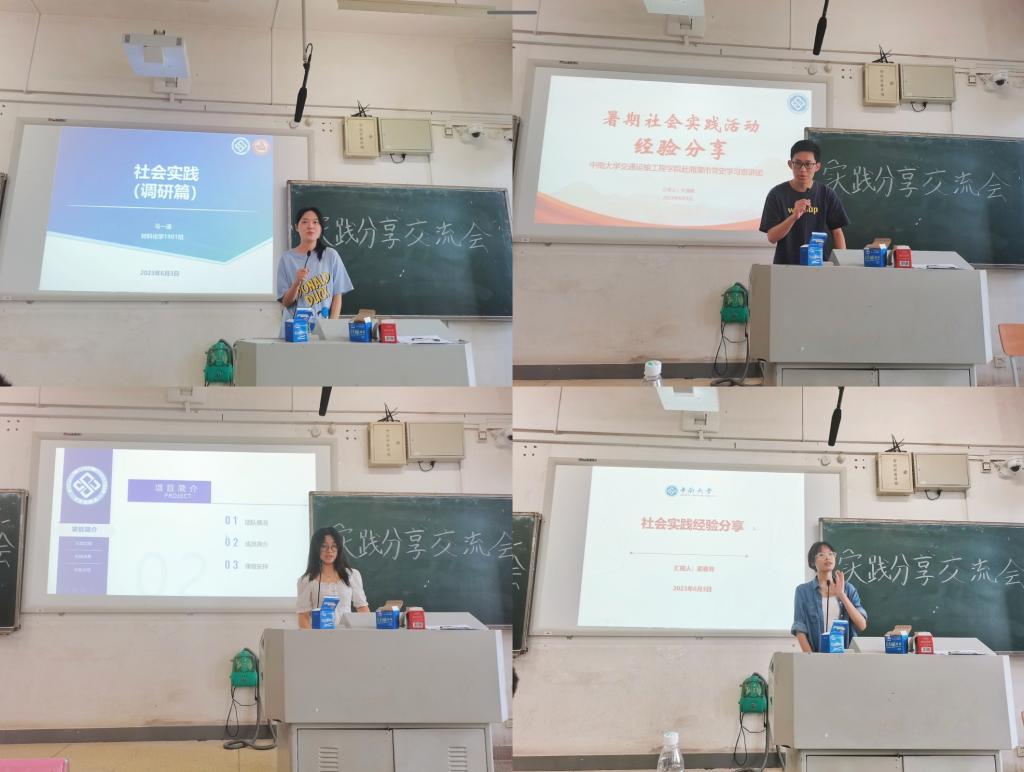 6月3日下午四点,交通院、粉冶院于新校区A座122联合举办2023年暑期社会实践经验分享会,旨在解决同学疑问,让更多学子走入社会实践大课堂。交通院团委书记张健老师、粉冶院团委副书记彭仕亨老师、各班代表参会,本次活动由陈潇璇同学主持,四名优秀实践团队成员进行分享。