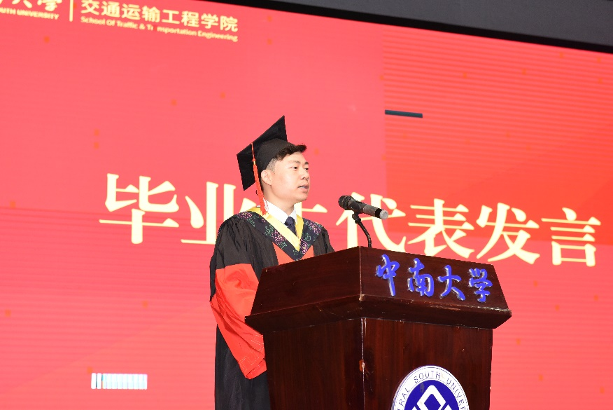 时光与学院同向同行、合力发展所取得的辉煌成就。之后,他语重心长地谈到:“时代是青年发展最宝贵的沃土,青年是时代发展最蓬勃的动力。”勉励在座学子在面对国家需求时,应勇担时代使命;面对个人养成时,应锤炼品德修养;面对职业发展时,应练就过硬本领;面对前程闯荡时,应发扬中南精神。最后,高院长深情谈到:“青山不改,绿水长流,山水有相逢。亲爱的同学们,请相信,母校永远会是你们的港湾。”