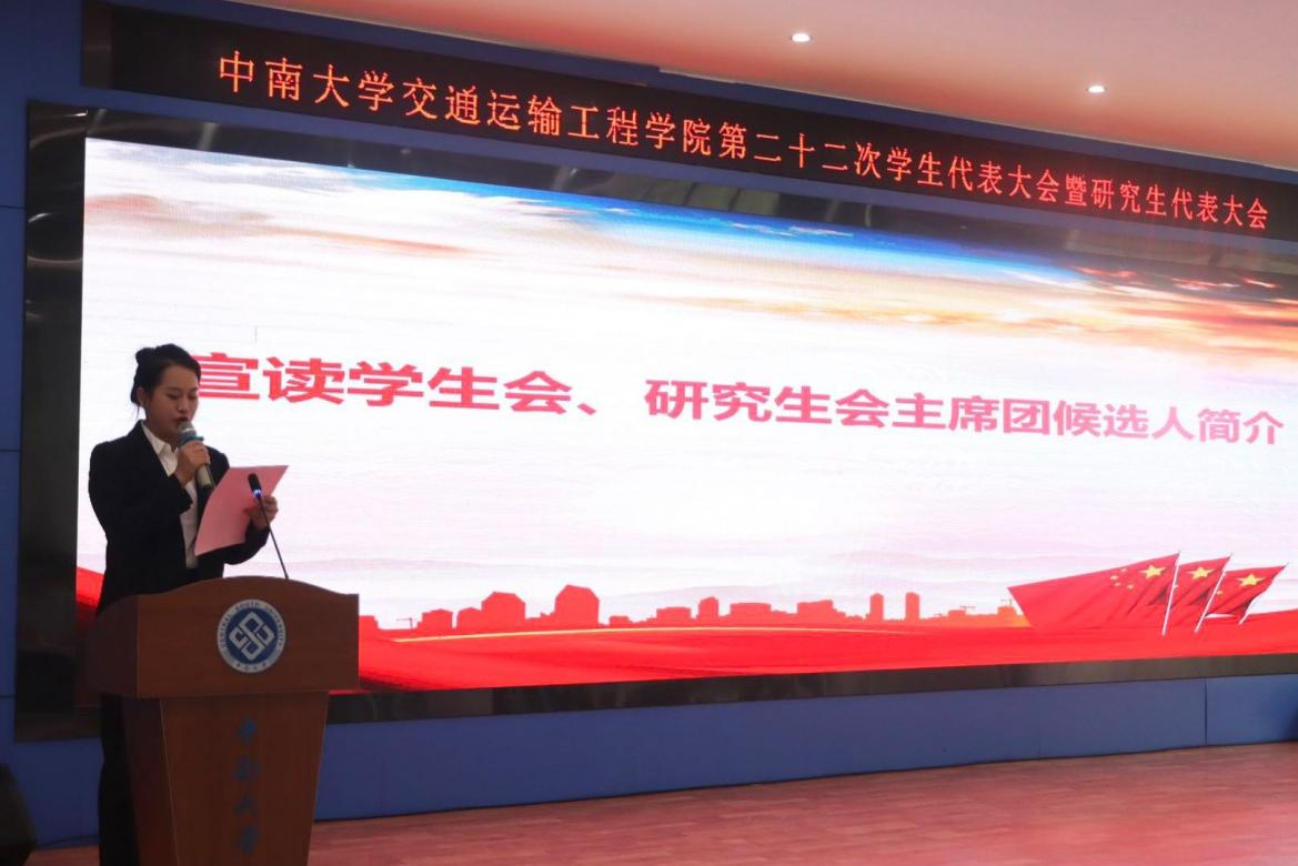 第二十二次学生代表大会暨研究生代表大会预备会议正式开始。预备会议上,丁德孝宣读《代表资格审查报告》和《筹委会工作报告》。随后,预备会议宣布并通过了大会主席团、秘书长、副秘书长名单,审议通过交通院学生会及研究生会章程修订案、代表大会选举办法(草案),并采用差额选举预选了学院学生会、研究生会主席团候选人。