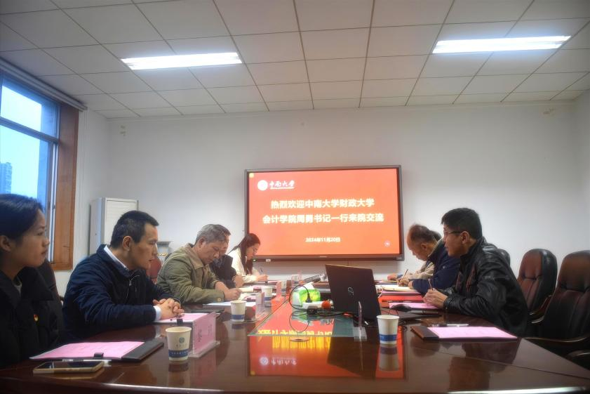 11月20日下午三点,中南财经政法大学会计学院党委书记周伟,副书记、纪委书记兼行政副院长黄波,副书记胡桂锬,党务秘书畅雅莉及本科第二党支部书记黎玥一行来同人动漫