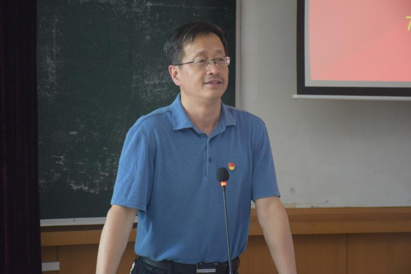 接着,老党员戴永宝老师向同志们分享优秀党员事迹以及长沙铁道学院艰苦创业史和中国铁路的艰苦发展史。戴老师提到,在铁道学院的建校初期,条件艰苦,物资匮乏,那时的同志们主动投身于校区的施工建设中,跟施工队伍一起挖地基、砌房子,充分发扬了艰苦奋斗精神。他希望同志们走向社会后,继续发扬老一辈人的艰苦奋斗精神,把个人的理想自觉的融入到国家的事业中去,小我与大我相结合,充分发挥个人才能。