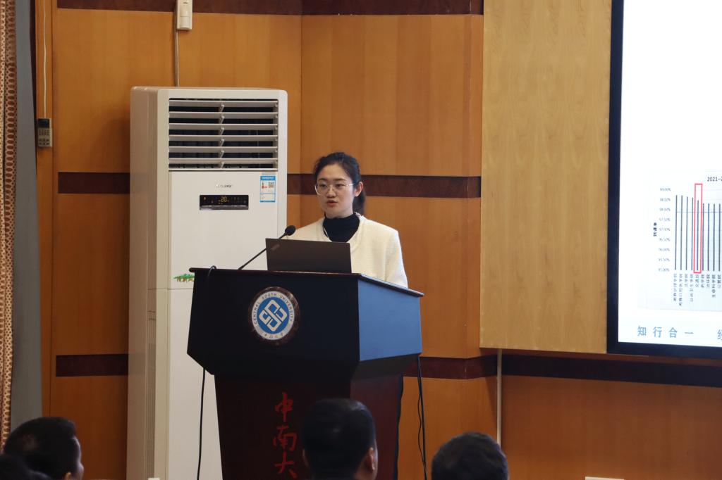 会议伊始,学院学风建设专干陈晨老师汇报学院2022年学风建设情况。在学院党委领导下,学院根据年级特点,在励学、勤学、优学、辅学四大体系的指导下,将日常督查和特色活动相结合,开展一系列学风建设活动,学风建设成效显著。学院学科竞赛成果丰硕,课程不及格人数趋于下降,到课率、补考通过率居学校前列,涌现出一大批先进个人和先进集体。汇报最后,陈老师介绍了2023年学风建设安排计划。