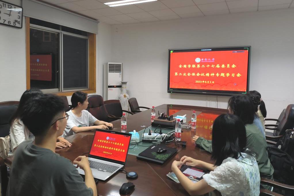 6月1日晚九点,交通院团委、学生会于交通楼322进行全国学联第二十七届委员会第二次全体会议精神专题学习。会议采用线上线下结合的方式开展,由学生会主席杨林乐主持。