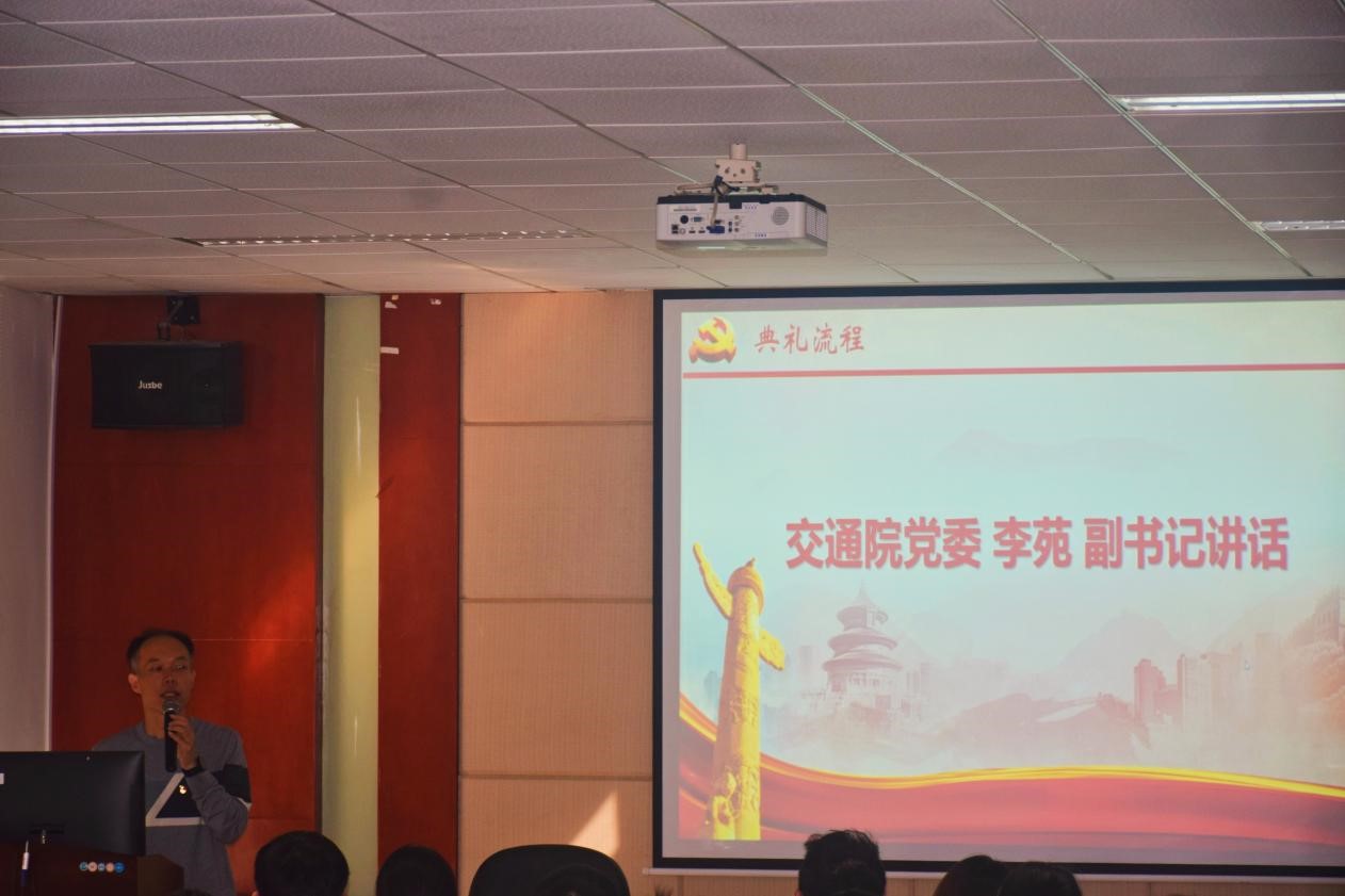 典礼第二项,培训班学员代表——交通运输第二学生党支部李嘉贤同学发言。他带领同学们回顾了党的光辉历程,表示作为新时代新征程上的中坚力量,不仅要学习党的光辉历史,更要汲取其背后的精神力量,用党的科学理论武装头脑,提高自身道德修养,努力把自己培养成党和人民需要的高素质人才。作为培训班的一员,李嘉贤同学代表全体学员向党组织作出保证,期许所有同志在本次培训中能够有所收获。