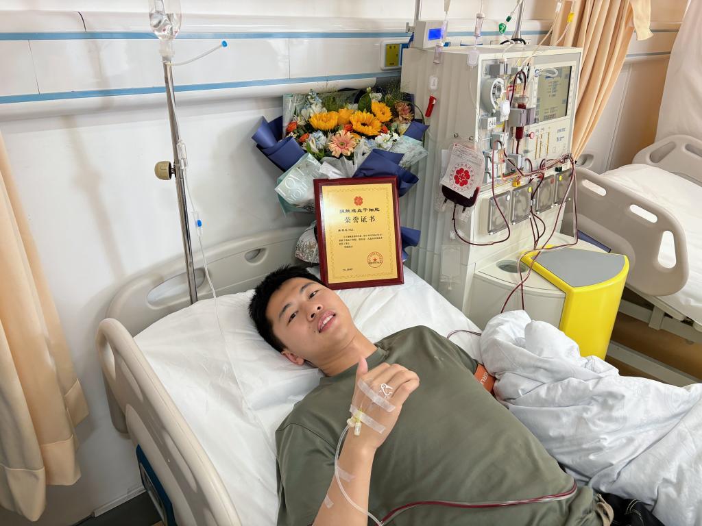 2020年,退伍归来的龚智龙同学完成了一个夙愿:第一次献血并加入了中华骨髓库,以此弥补未能如期完成的“18岁成人礼”。“我从小就觉得无偿献血、献爱心是一件很光荣的事情。” 这份对公益事业的热忱,在今年4月迎来回响。当接到配型成功的电话时,龚智龙同学没有丝毫犹豫,“当时没多想就答应了,唯一担心近视是否影响捐献。”军人的果敢与善良,在这一刻展现无遗。