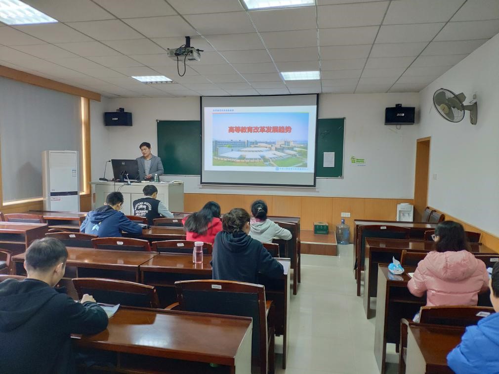 黄老师从“认识并遵循高等教育规律”、“与世界高等教育发展同频共振”以及“我国高等教育改革发展的奋进之笔”这三个方面分析了我国高等教育改革的趋势。此外,他还结合多年的思政工作和学工辅导经验,举出多个事例,向大家强调了本科教育的重要性,并介绍了我国部分高校在高等教育改革上的创新举措。